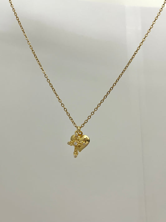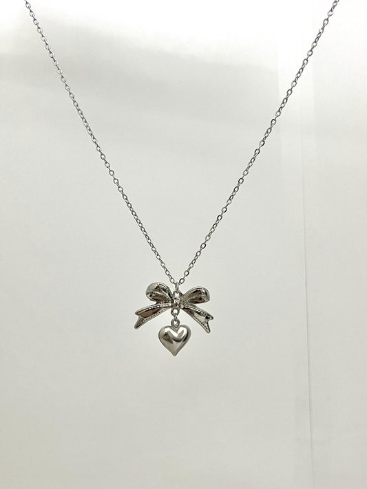 Silver Bow with Heart Necklace | Simple Coquette Necklace