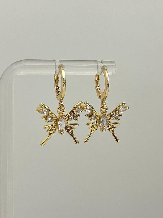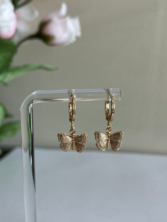 Gold Butterfly Huggie Earrings, 18K Gold-Plated
