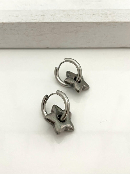 Silver Star Huggie Earrings | Stainless Steel Handmade Earrings