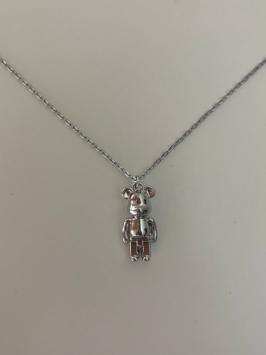 Silver Brick Bear Necklace