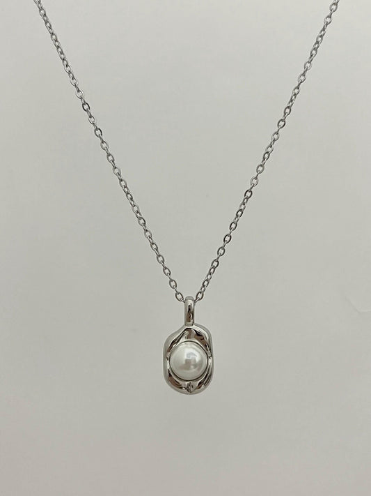 Silver Pearl Necklace | Stainless Steel Chain