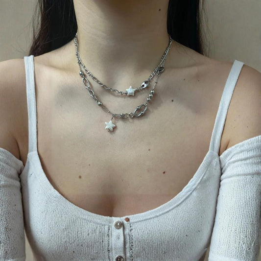Pearl Star Layered Punk Necklaces