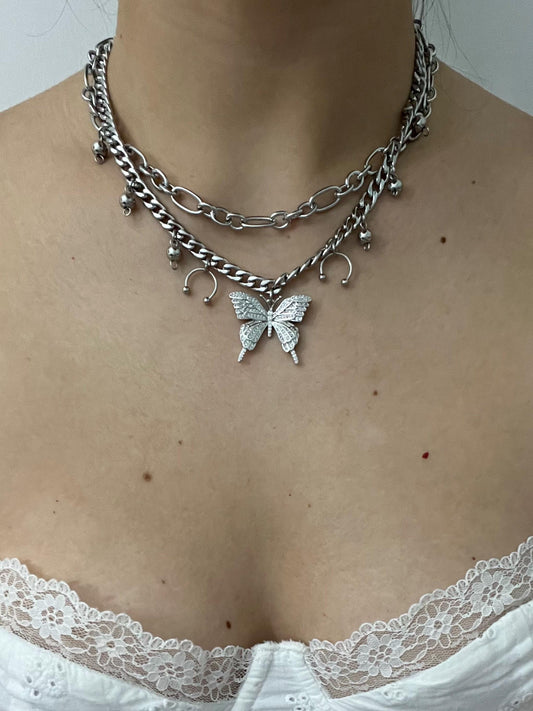 Chunky Layered Butterfly Necklace made with Stainless Steel