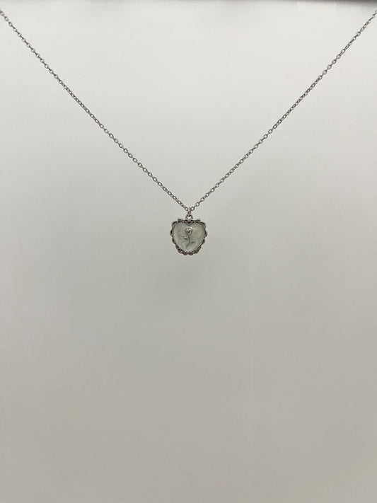 White Heart with Rose Necklace | Stainless Steel Jewelry
