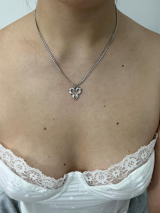 Silver Fire Heart Necklace, Stainless Steel