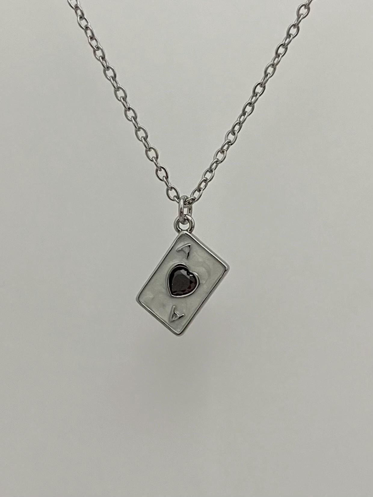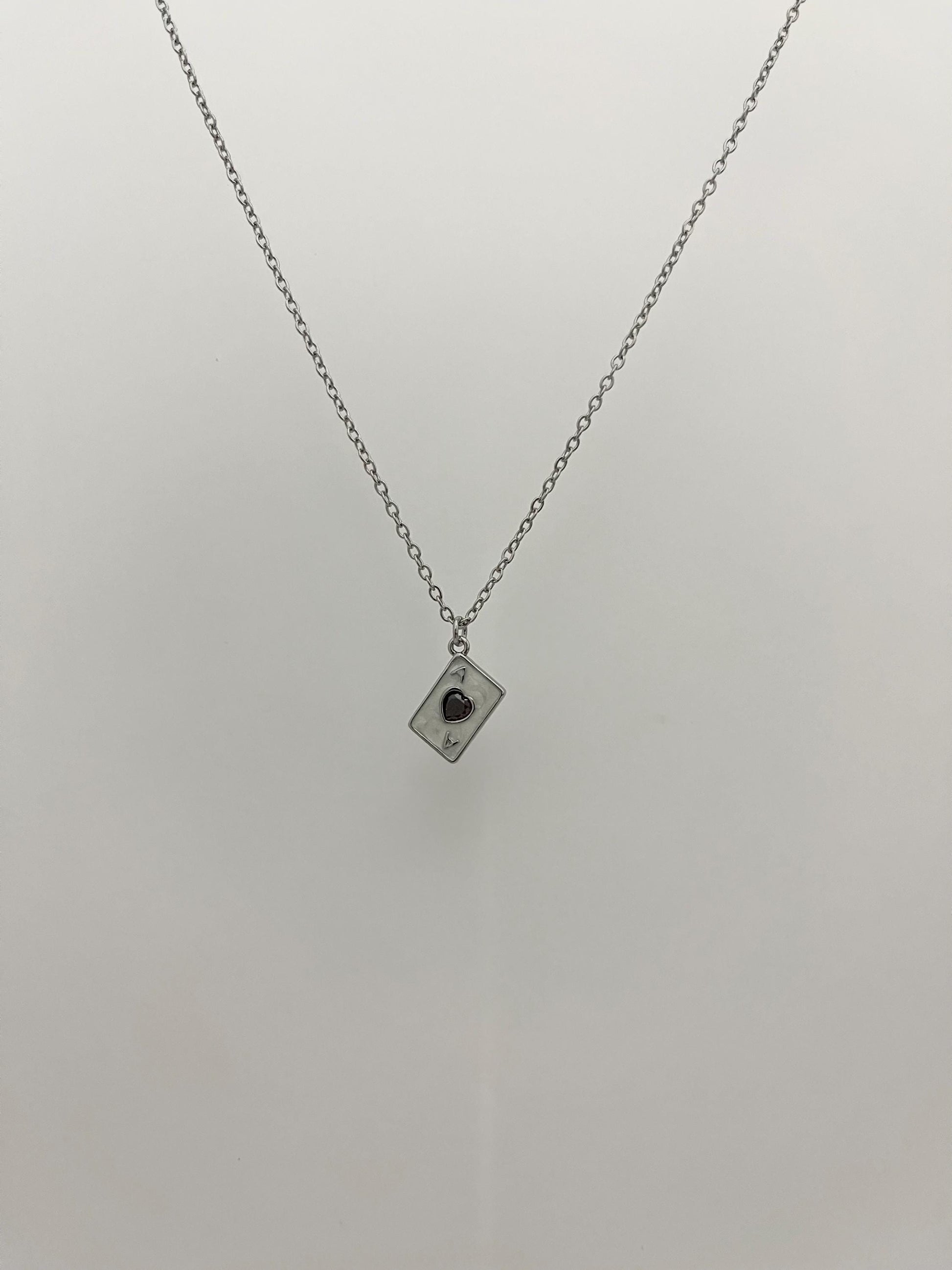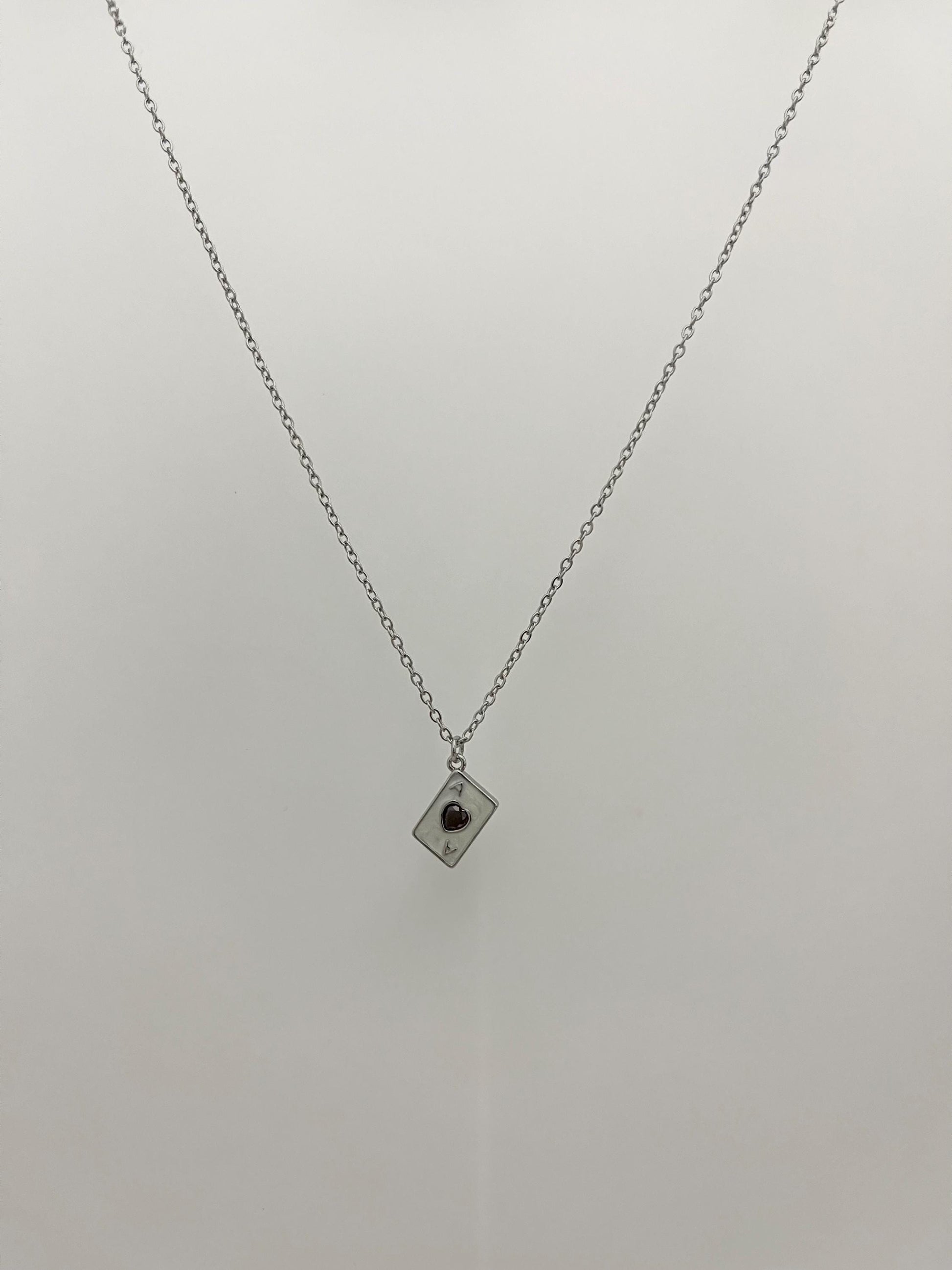 This Ace of Hearts pendant necklace is a cute and quirky necklace. This necklace features a dark red heart in the center, that shine in the light. It's simple design makes this necklace is perfect for stacking or layering.