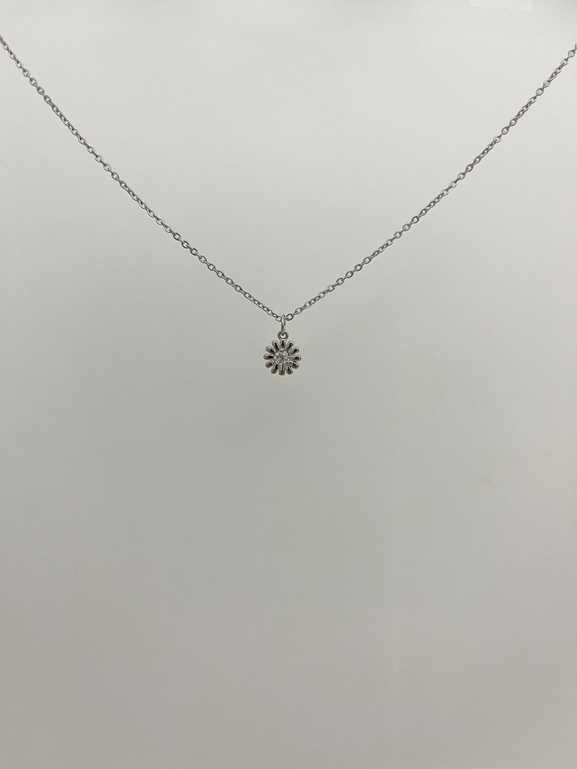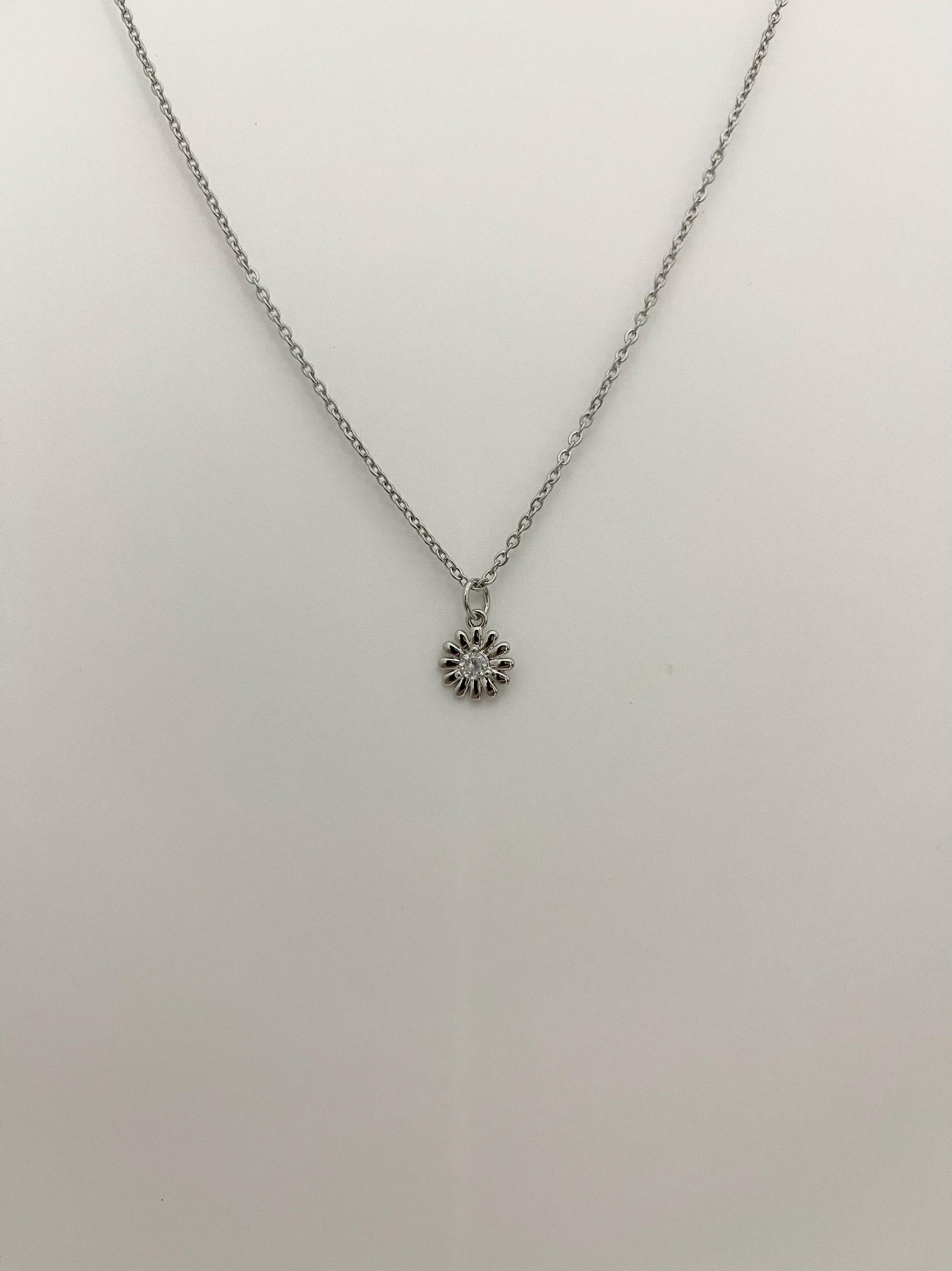 This Mini Silver Daisy Necklace is the perfect everyday necklace. It is dainty and sweet making it the perfect versatile piece for necklace layering in the spring and summer. This necklace also makes the perfect gift for her.