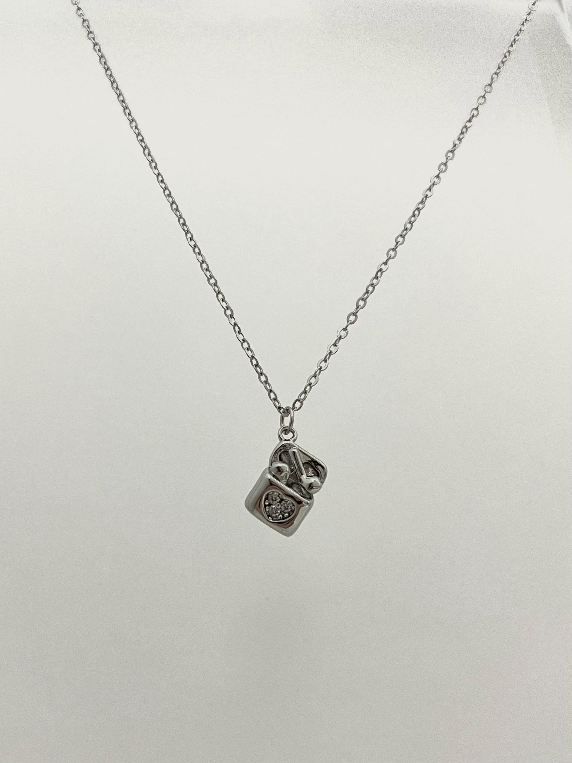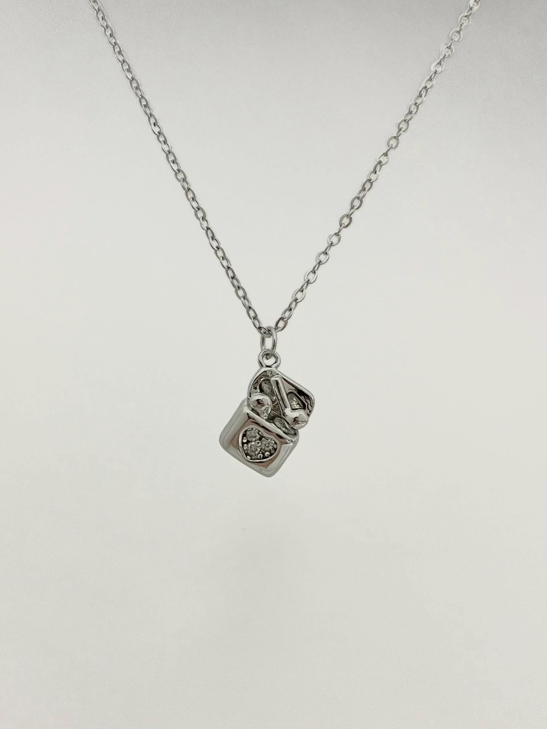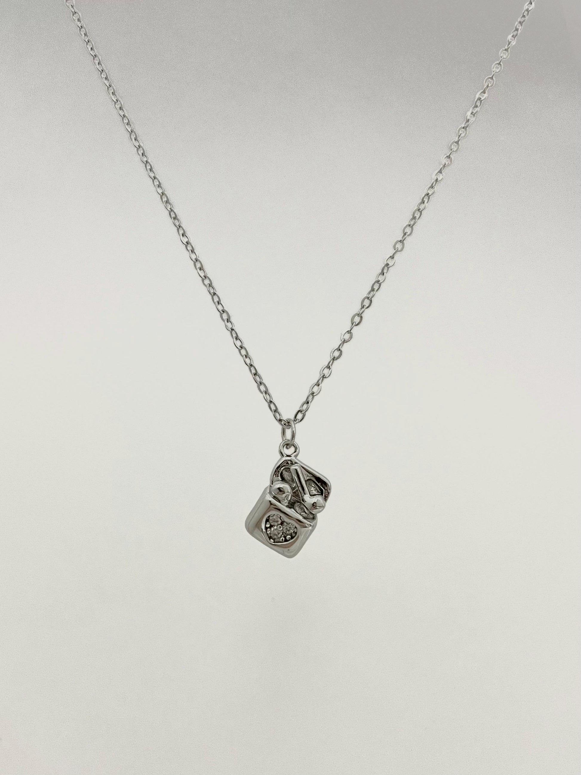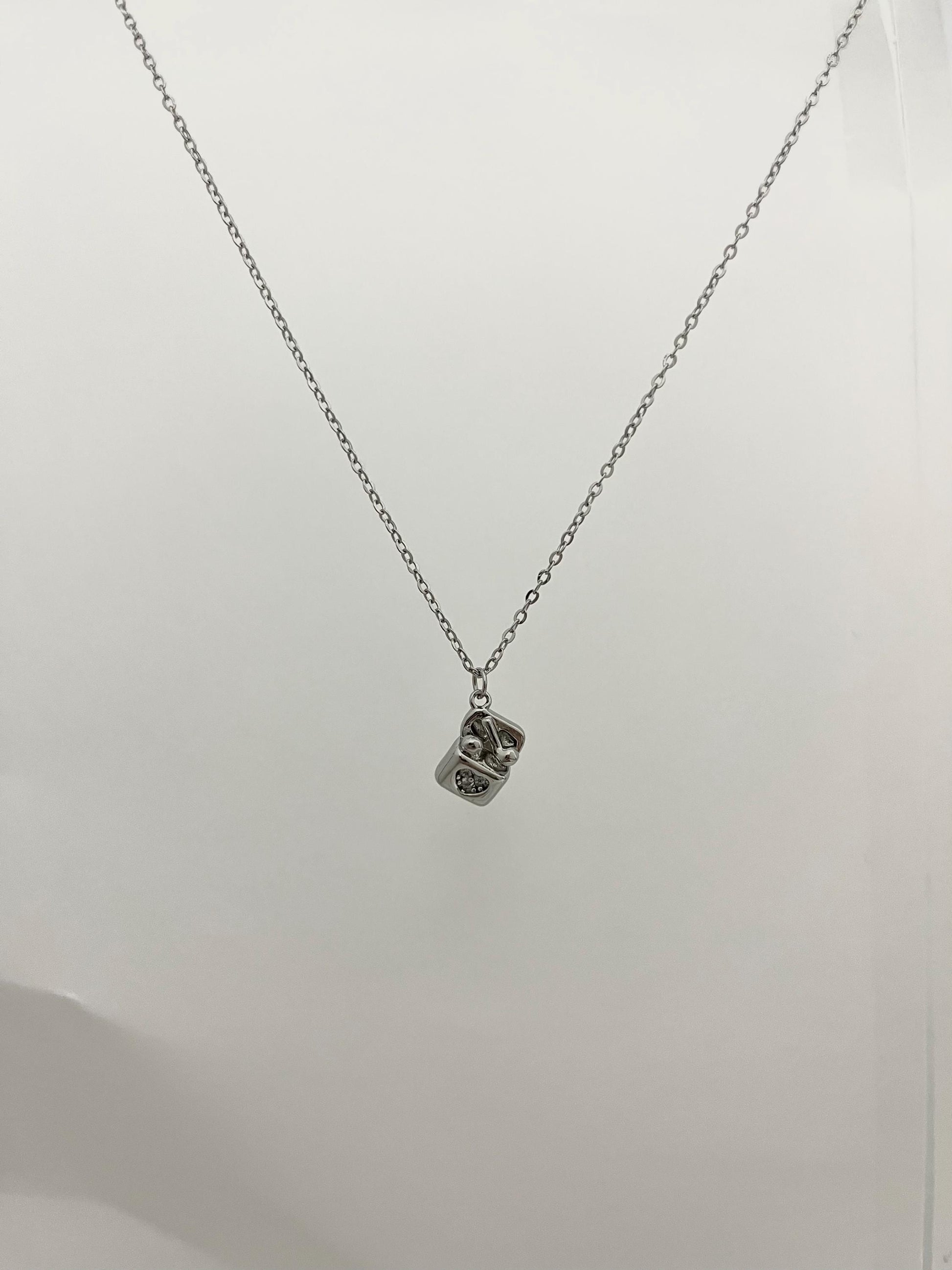 Airpod Pendant Necklace This necklace is a fun and cute take on your everyday necklace. It features an adorable airpod and airpod case charm. It is micro sized for a subtle look. Pair with any silver jewelry stack to add a bit of personality to your outfit.