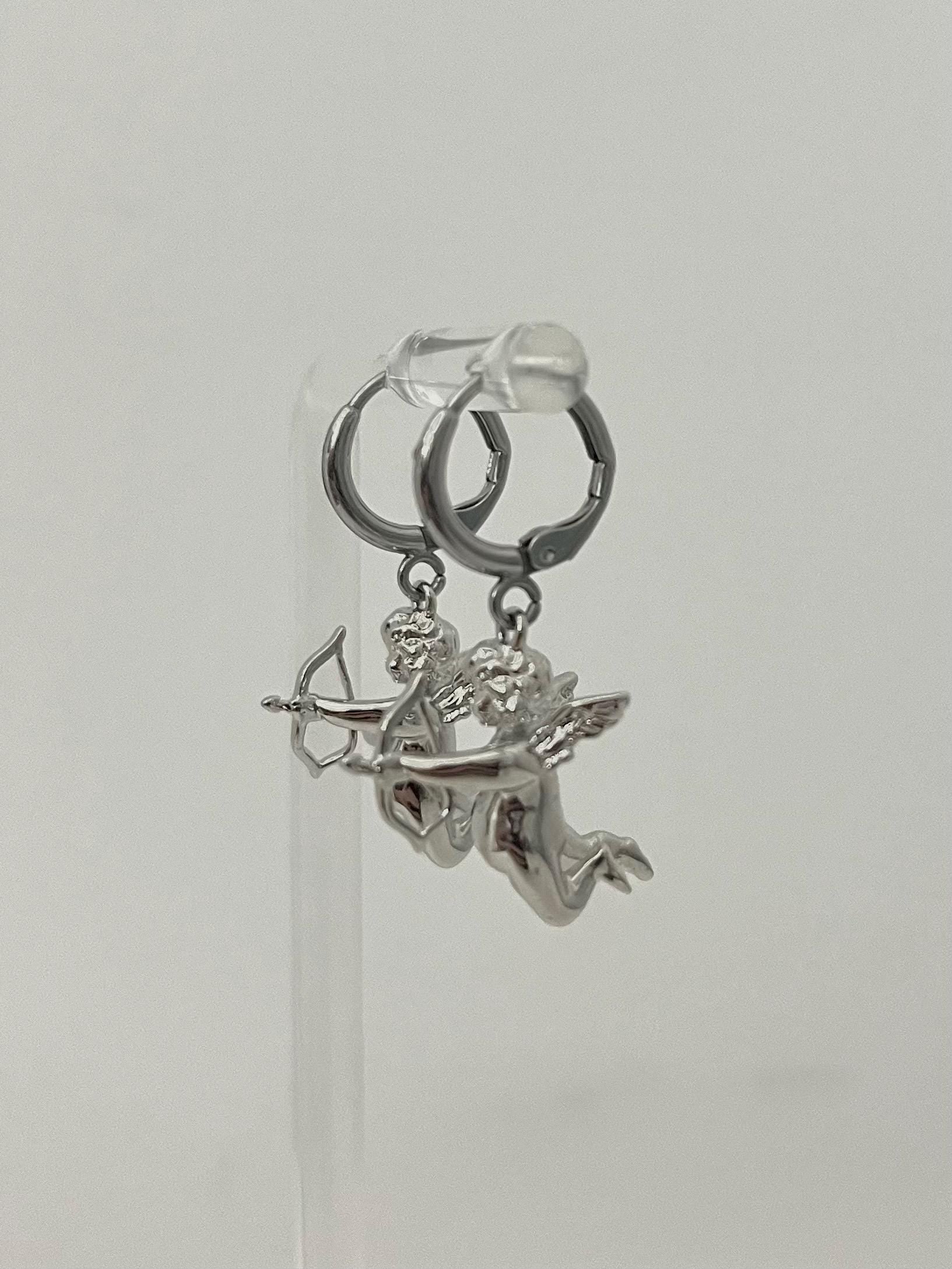 Designed for the modern romantic, these silver cupid earrings blend delicate charm with a romantic edgy vibe. Crafted with high-quality, hypoallergenic stainless steel huggie hoops, these earrings are safe for sensitive ears and comfortable for all-day wear.