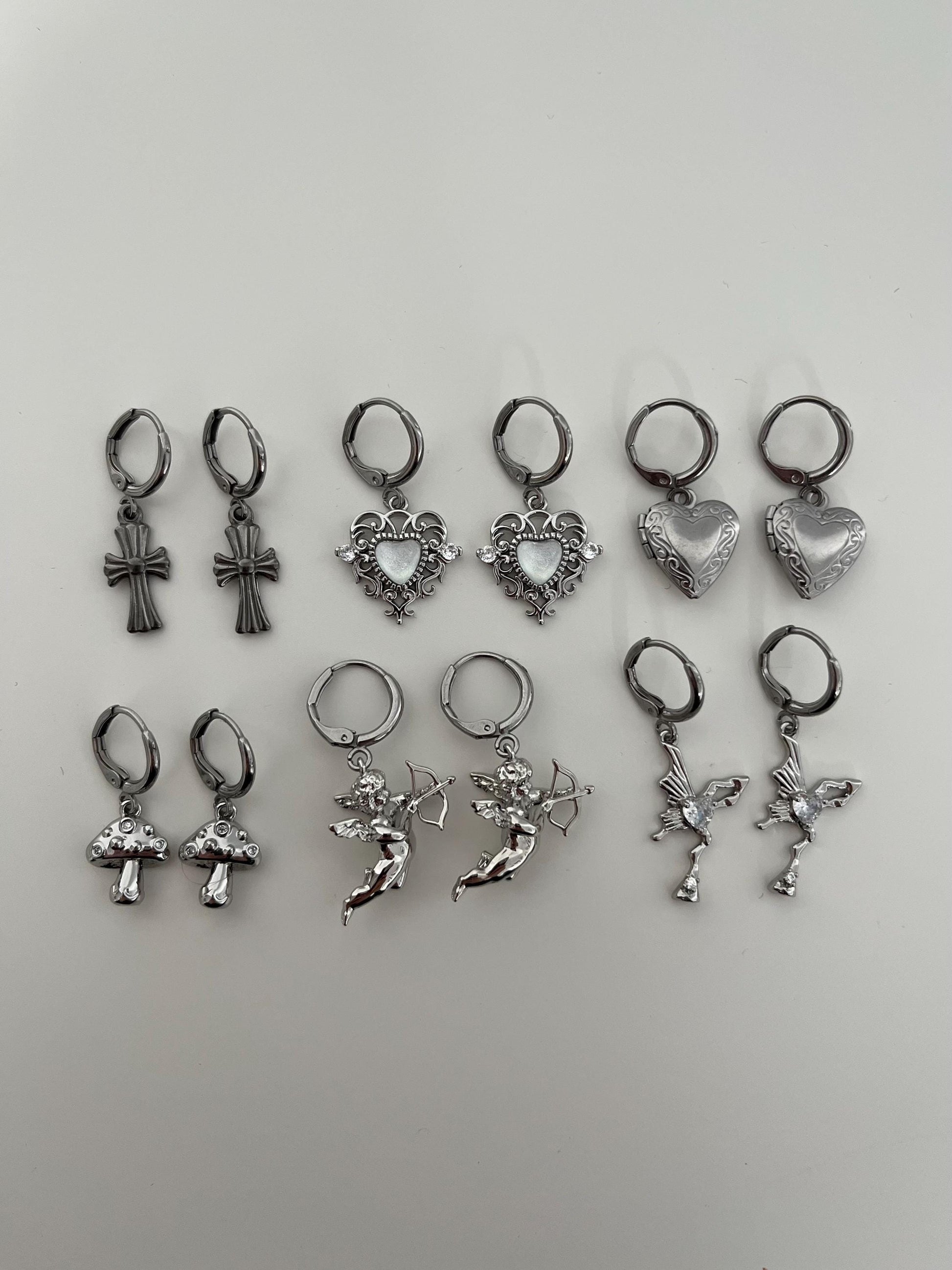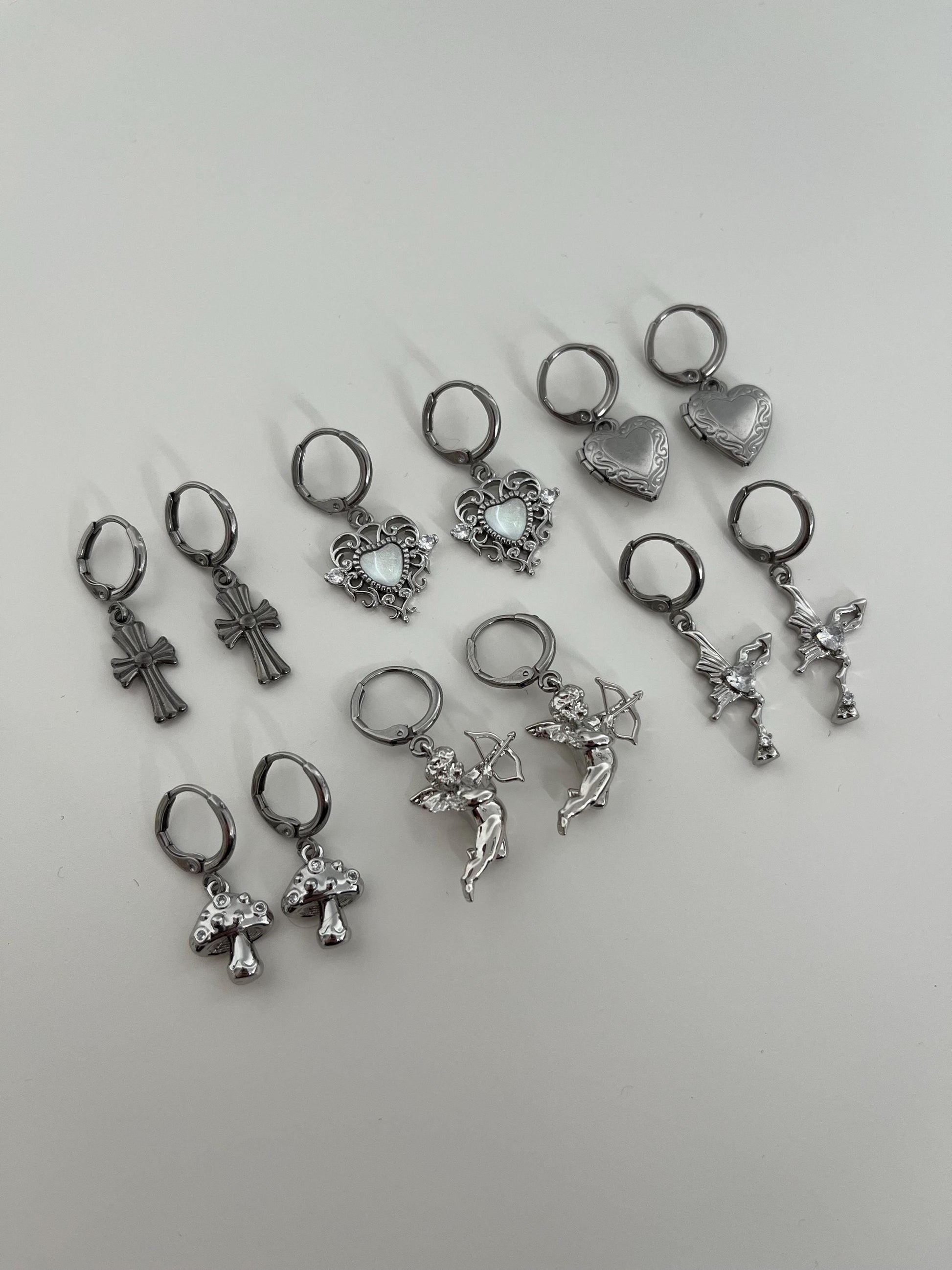 All earrings are made with stainless steel hooks. The pendants are gold-filled over brass. The cross earrings are completely stainless steel.