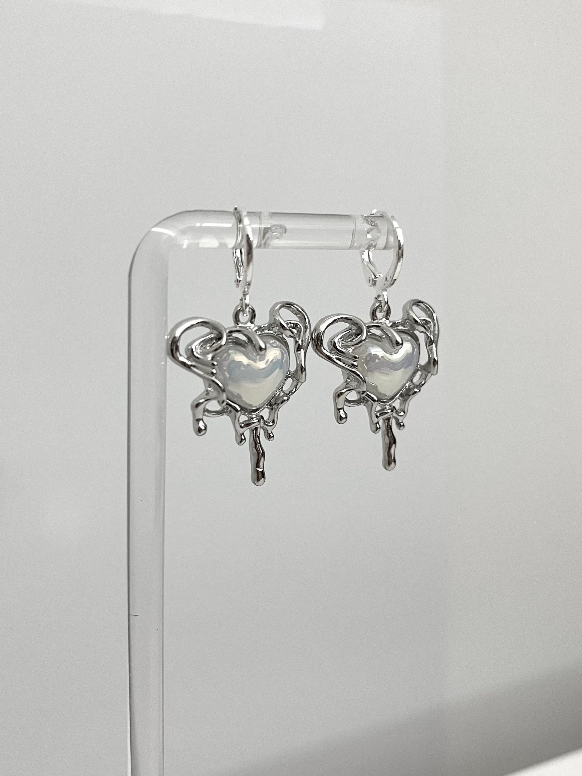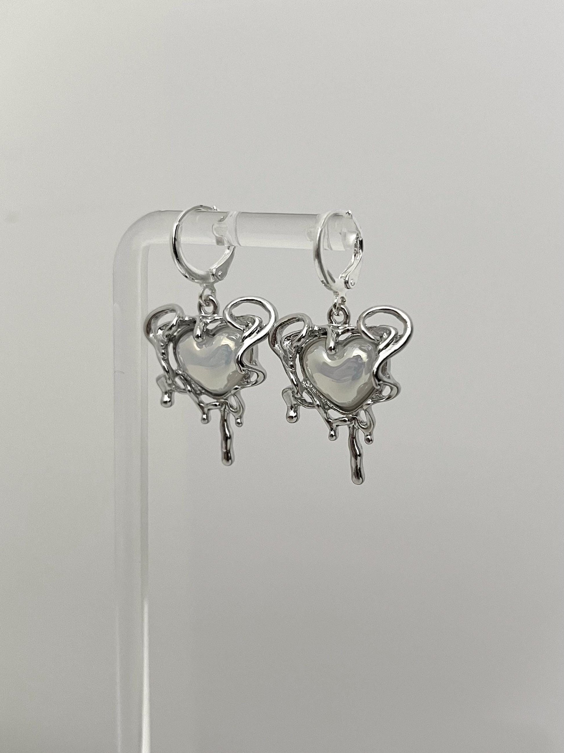 These melted heart earrings are the perfect mix between girly and edgy. Add these to any outfit to spice up your look. Please remove before entering shower to best preserve the pendant.