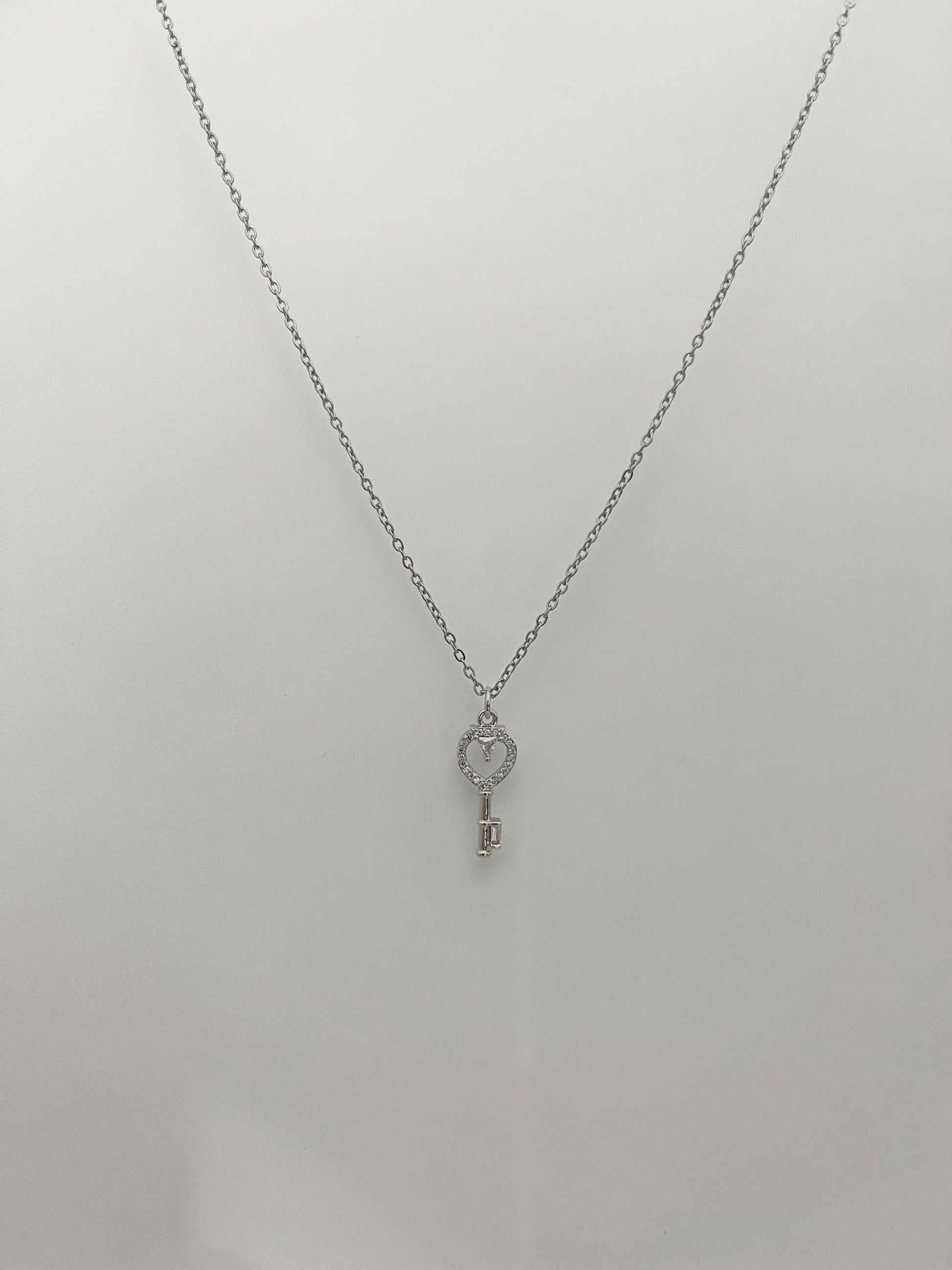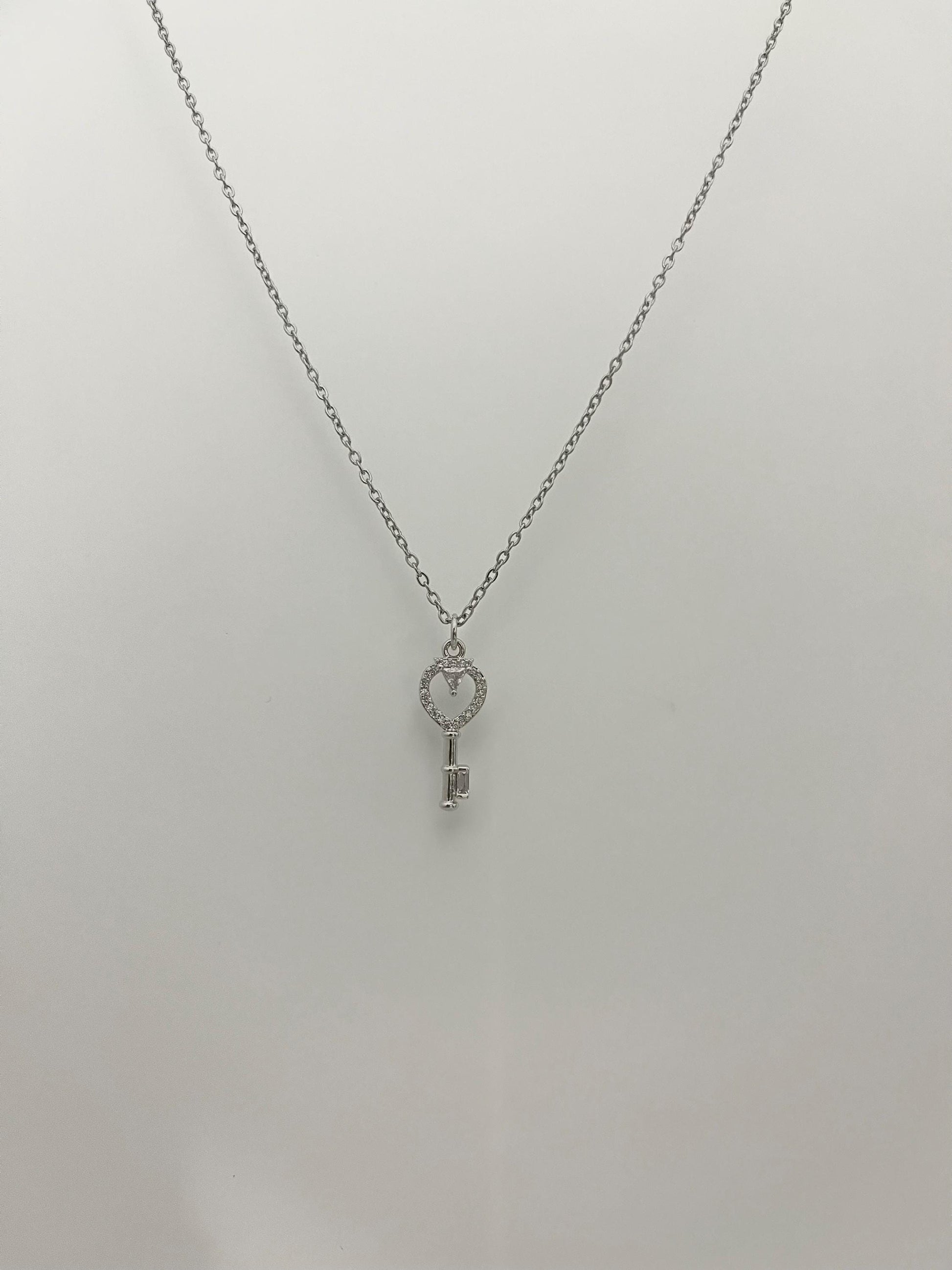 This silver necklace is a perfect every day necklace. It's simple and sleek design makes it suitable for any outfit. The pendant contains cubic zirconia crystals to add some shine to your look.