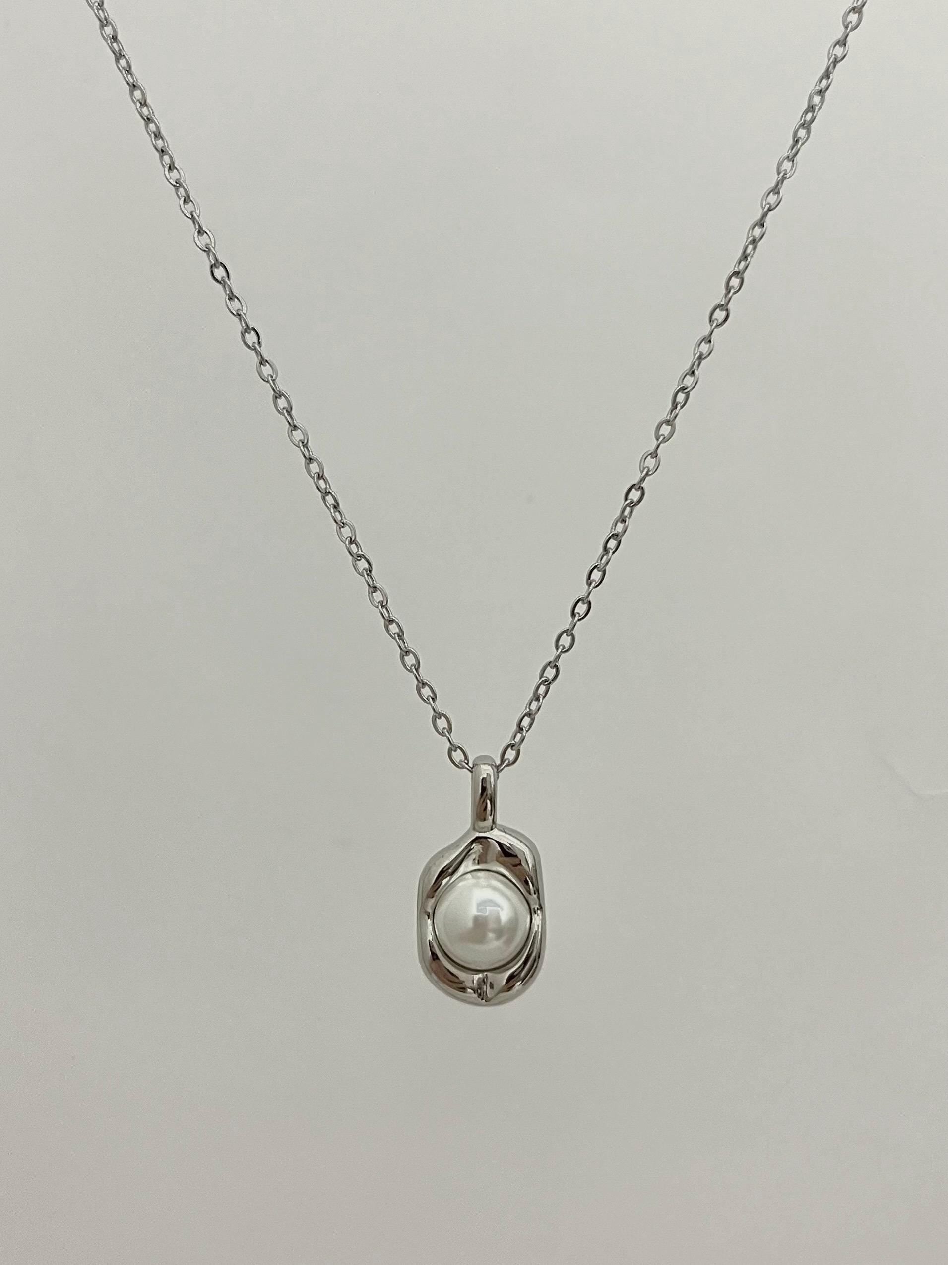 Silver Pearl Necklace | Stainless Steel Chain