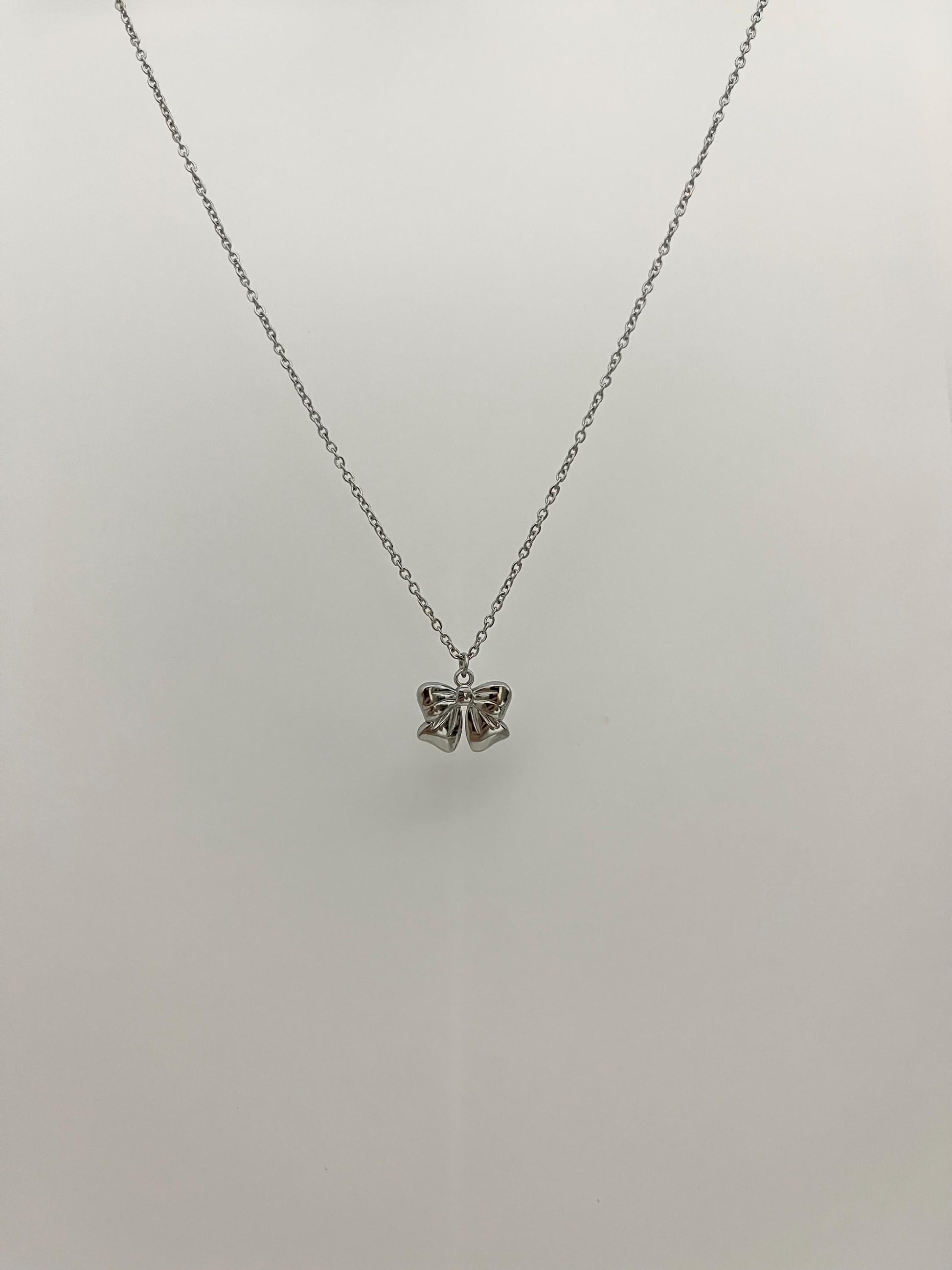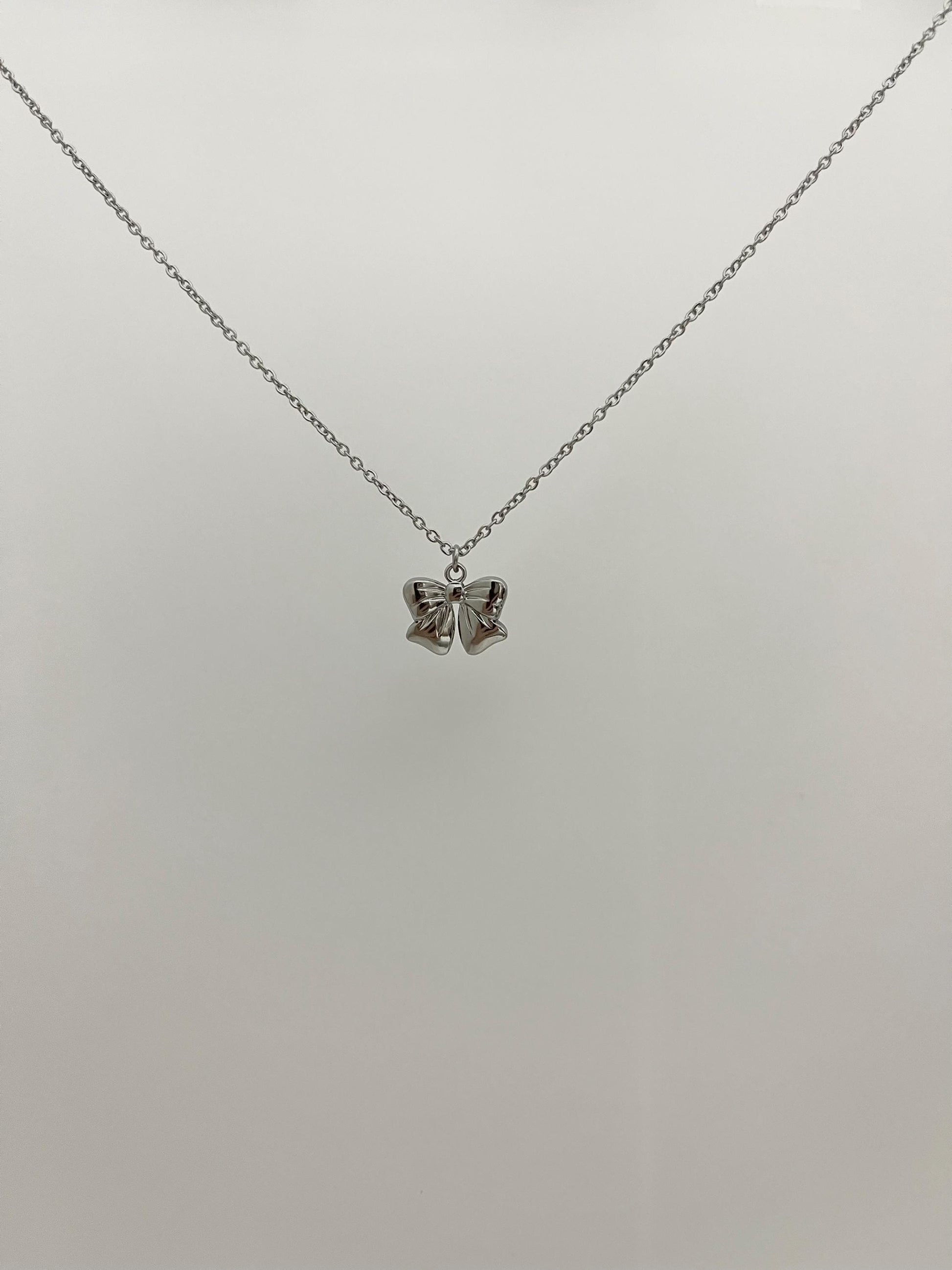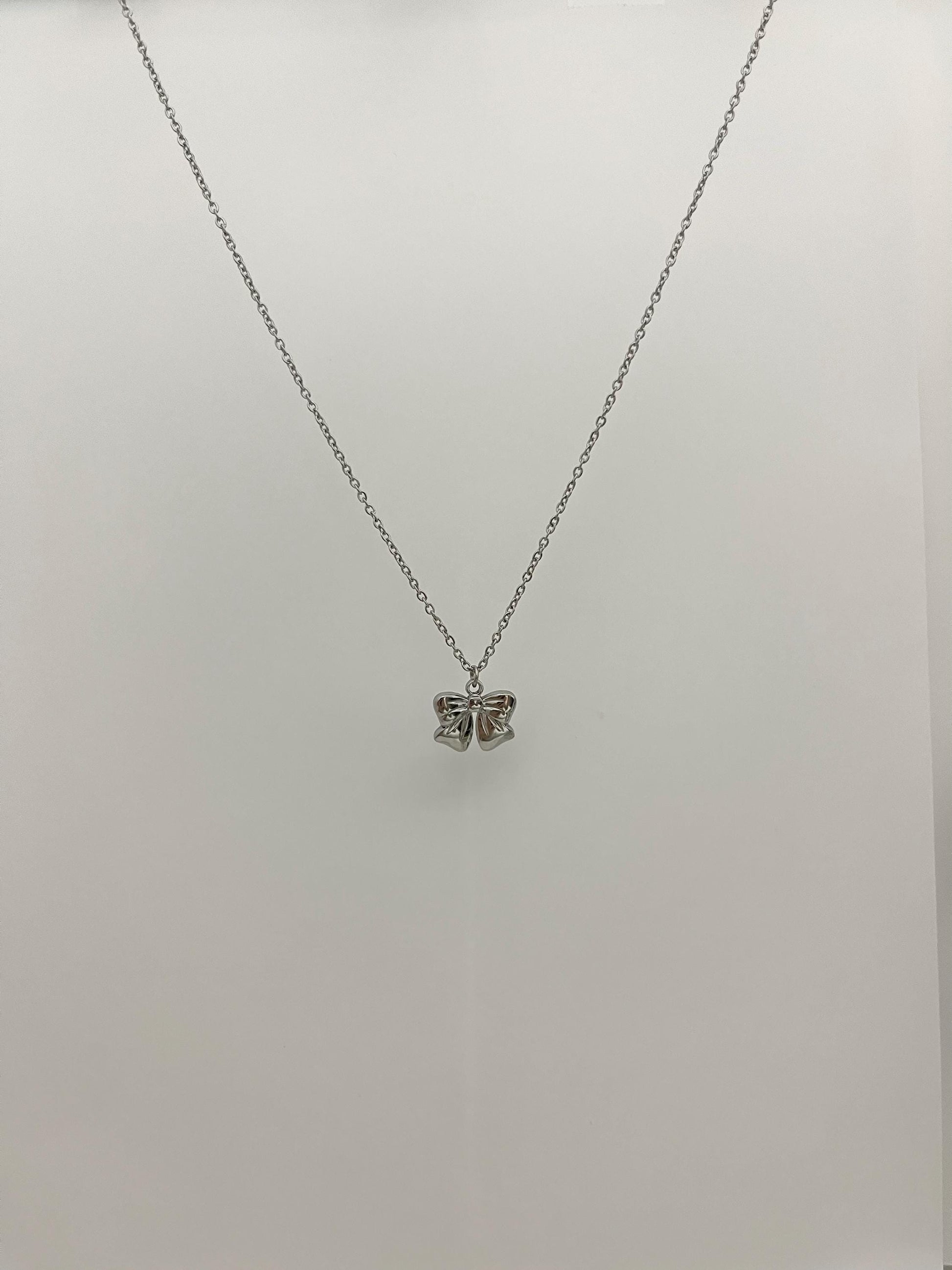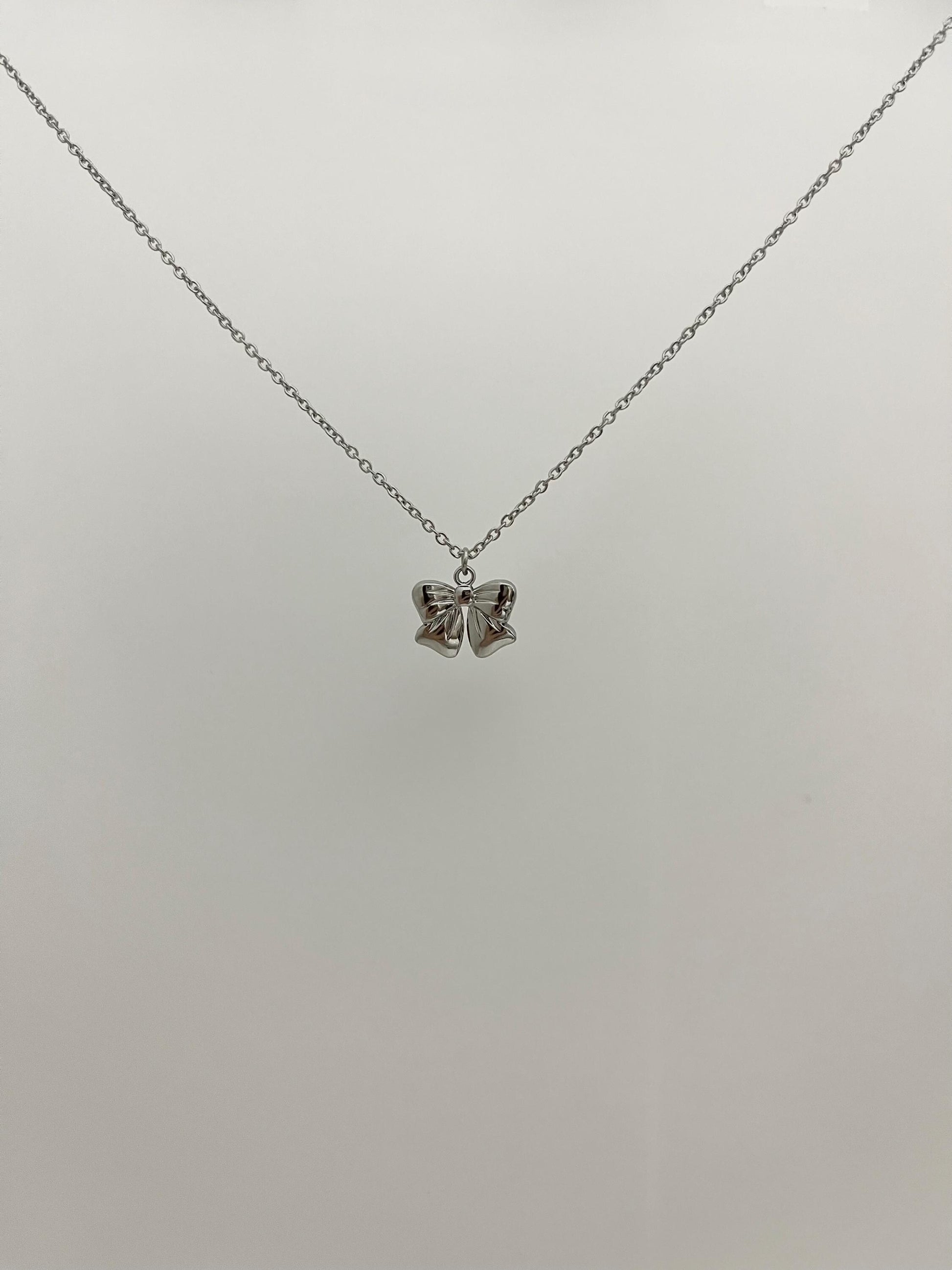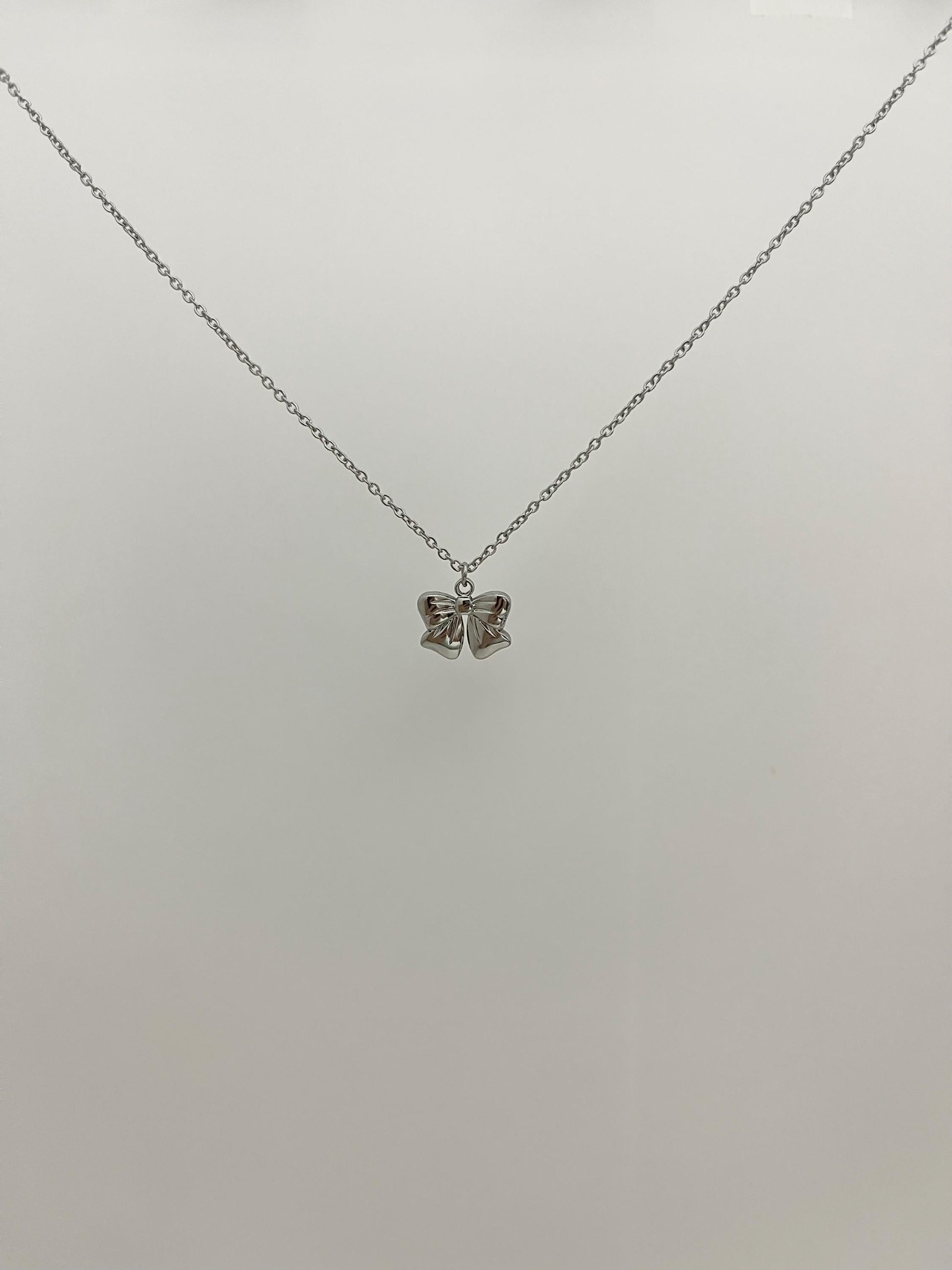 This simple silver bow necklace is a cute every day staple necklace. The necklace is 17 inches long plus a 2 inch extender. The pendant, chain and findings are all stainless steel. The pendant size is 1.4cm x 1.2cm. This necklace makes for the perfect gift for her.
